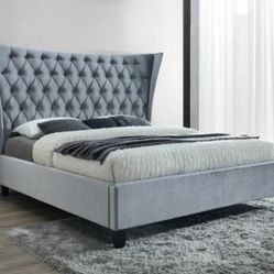 Kiki Velvet Grey King Bed (3 Boxes)