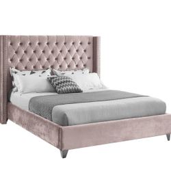 Cleo Velvet Pink King Bed (3 Boxes)