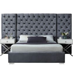 Kiki Velvet Grey King Bed (3 Boxes)