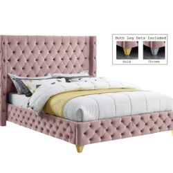 Zara Velvet Pink King Bed (3 Boxes)