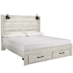 Kanwyn Whitewash King Panel Storage Bed