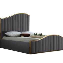 Jolie Velvet Grey King Bed (3 Boxes)