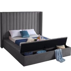 Dior Grey Velvet King Storage Platform Bed