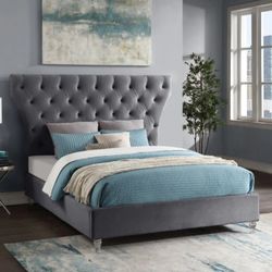 Rowan Velvet Grey Queen Bed (3 Boxes)