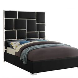 Dolce Velvet Black Queen Bed (3 Boxes)
