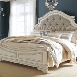 Realyn Chipped White King Panel Bed