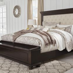 Brynhurst Dark Brown King Upholstered Panel Bed