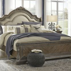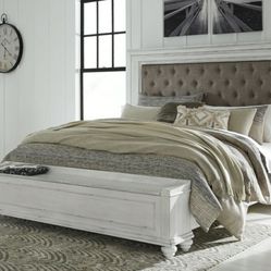 Vance Linen / Wood Navy King Bed (3 Boxes)