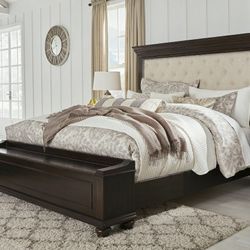 Brynhurst Dark Brown King Upholstered Storage Bed