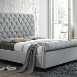 Kate Gray Upholstered Queen Sleigh Platform Bed