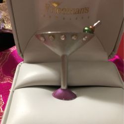 Pretty!Adorable ! Silver Martini Vintage Pin/Brooch With Diamond Crystal Stones $15Gainesville, VA