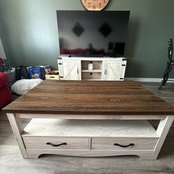 Farmhouse Coffee Table, Rectangle Coffee Table with 2-Sliding Barn Doors, 2-Tiers Wooden Table$130Alexandria, VA
