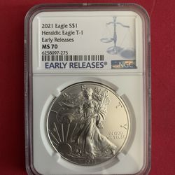 2021 Silver Heraldic Silver Eagle Type 1 Early Releases MS70$200Washington, DC
