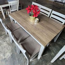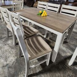 Two Tone Brown / White Color Skempton Dining Room 6 Chairs And Table Set | 39$ Down Payment With Financing @ Fastest Delivery π$729Manassas, VA