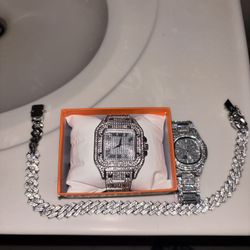Iced Out moissanite Watch & Cuban Link Bracelet Set$90Woodbridge, VA