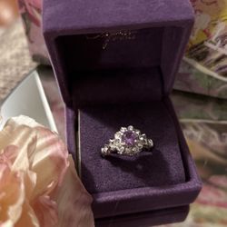 Gorgeous! Victorian Sterling Silver Amethyst Purple Stone Ring With Diamond White Sapphires $35Gainesville, VA