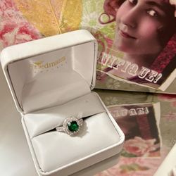 Gorgeous! Sterling Silver Victorian Ring With Green Emerald Stone And White Diamond Sapphire Stones $35Gainesville, VA