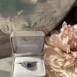 Gorgeous! Victorian Sterling Silver Blue Sapphire Ring With Diamond White Sapphire Stones $35Gainesville, VA