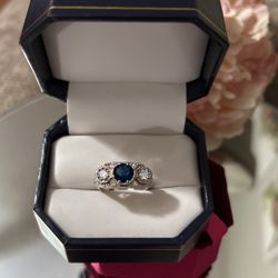 Beautiful! Blue Sapphire Stone Sterling Silver Ring With Diamond White sapphire Stones $35Gainesville, VA