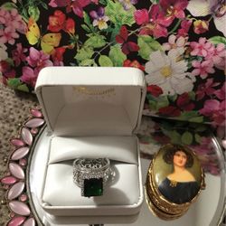 Gorgeous ! Sterling Silver Victorian Ring With Green Emerald Center Stone & Surrounding White Sapphire Diamond Stones $47Gainesville, VA