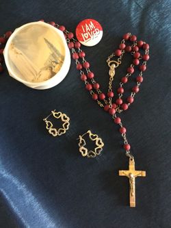Rose scented Rosary with Cross ๐ฟ๐น๐ฟSilver Hearts hoop earrings / each sells for $25$25Alexandria, VA