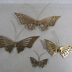 Set of 4 Vintage Solid Brass Butterflies Wall Hanging Decor by Enesco