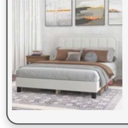 Beige Queen Size Bed Frame With Fabric Headboard$70Fairfax, VA