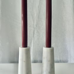 2 West Elm Foundations White Marble Reversible Candleholders & Pottery Barn Flameless Taper Candles $50Alexandria, VA