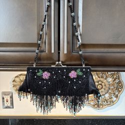 Vintage Inspired Black Beaded Evening Bag Clutch Purse Floral Dangle Bead Fringe$35Stafford, VA
