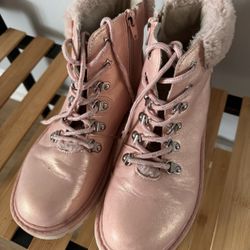 Girls pink faux-fur lace-up boots size 4$10Virginia Beach, VA