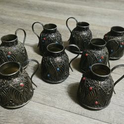 8 Old Filigree Scrollwork Embedded Colored Beaded Jugs/Cups maybe Tibetian all $25 (Read)$25Norfolk, VA