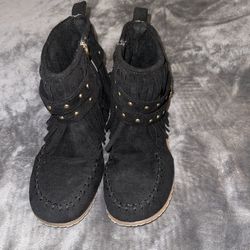 Minnetonka Black Suede Wedge Ankle Fringed Boots Zip Woman's Size 9$20Chesapeake, VA