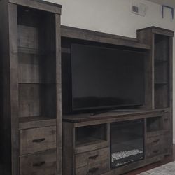 Large TV Stand / Entertainment Center w/ Electric Fireplace & Shelving – Rustic Brown$400Suffolk, VA