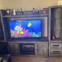 Tv stand with build in fireplace and bookshelf with lights$350Chesapeake, VA