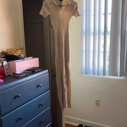 Beige Long Form Fitted Dress With Open Back $10Portsmouth, VA
