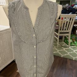 Old Navy Metallic Pinstripe Button Front Tank Blouse Womens M Ruffle Detail$7Hampton, VA