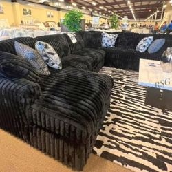 Black Fluffy Corduroy Sectional Couch With Dual Chaise Color Options ⭐$39 Down Payment with Financing ⭐ 90 Days same as cash$1,799Chesapeake, VA