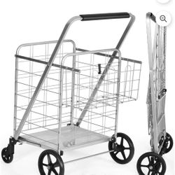 Patiojoy Folding Shopping Cart Jumbo Double Basket Grocery Cart with Wheels Silver $30$30Virginia Beach, VA