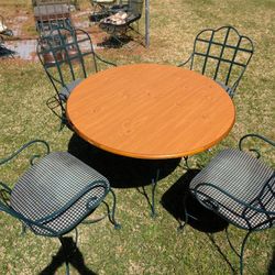 Indoor/outdoor patio table and chairs. All metal table and chairs in excellent condition. Wood top on table in excellent condition. Wood top is not ou$200Portsmouth, VA