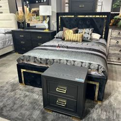 AP๐ Black/Gold Panel Upholstered Bedroom Set// 4-Piece (Bed, Dresser, Mirror, Nightstand)$979Chesapeake, VA
