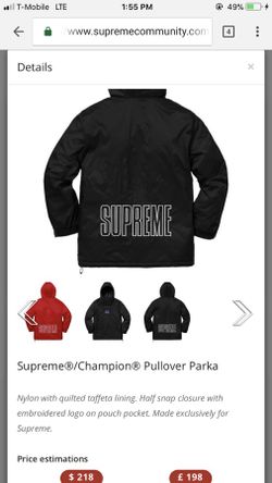 Selling ~ Black Supreme x Champion Pullover Parka$240Virginia Beach, VA