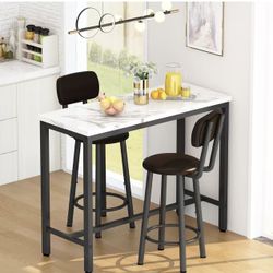3 Piece Bar Table Set of 2,39.3" Pub Bar Table and Chairs Set,Faux Marble Bar Height Table with 2 Backrest Stools,Small Dining Table for 2,Kitchen Tab$80Virginia Beach, VA
