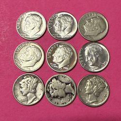 9 Silver Dimes Mercury / Roosevelt UNC / Proof$55Norfolk, VA