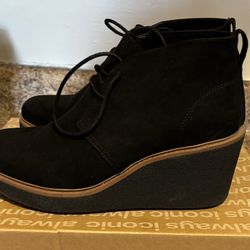 8 women’s Black heeled wedge boots lace up Arizona jean co shoe casual dress box$10Norfolk, VA