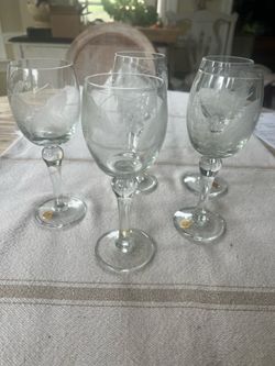 Five Romanian Etched Grapes and Vines Crystal Wine Glasses$50Virginia Beach, VA