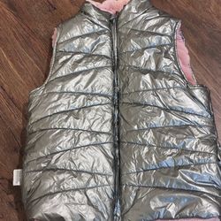 Epic Threads Girls XL Silver Pink Faux Fur Reversible Puffer Vest W/Pockets$18Hampton, VA