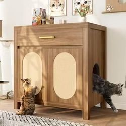 Wooden Cat Litter Box Enclosure, Hidden Cat Litter Box Furniture with Scratch Pad, Storage Drawer, Farmhouse Indoor Cat House Washroom End Table for L$90Virginia Beach, VA