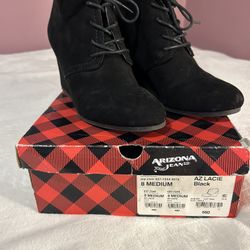 8 women’s Black heeled wedge boots lace up Arizona jean co shoe casual dress box$10Norfolk, VA