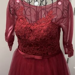 ISABUFI Wine Red Burgundy Lace Tulle Maxi Evening Dress Half Sleeves – NWT$60Richmond, VA