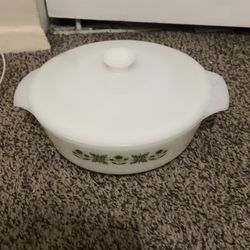 c1960s Anchor Hocking Fire King Meadow Green White Milk Glass Casserole Cookware w/ Original Lid$15Rich Int Ap, VA
